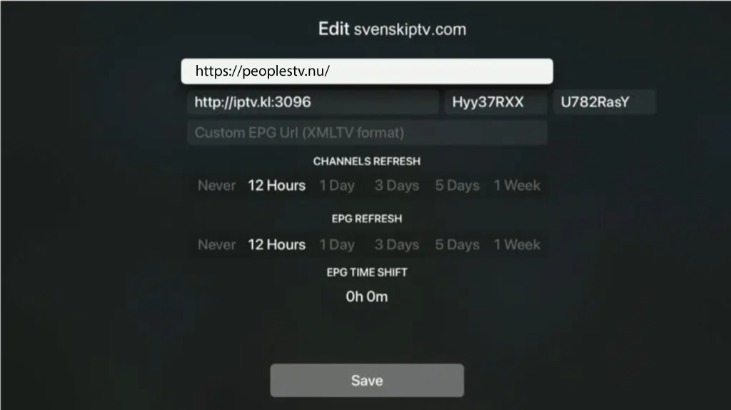 iPlayTV är enligt oss en av de bästa apparna i samma kategori som IPTVX för att titta på IPTV med Apple TV. Den är väldigt enkel att komma igång med och låter dig ladda upp dina kanaler på följande sätt: