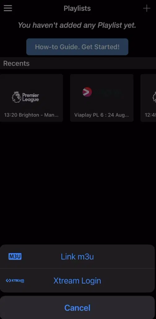 Starta appen och tryck på plustecknet uppe i hörnet. Välj sedan “Xtream Login“.