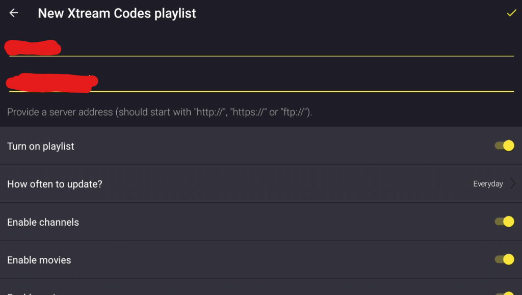 Det rekommenderas att ladda upp IPTV-spellistan via Xtream Codes, eftersom det automatiskt installerar EPG (programguiden) i bakgrunden. Om du istället väljer M3U-länken måste du manuellt fylla i EPG-länken som du får från oss.